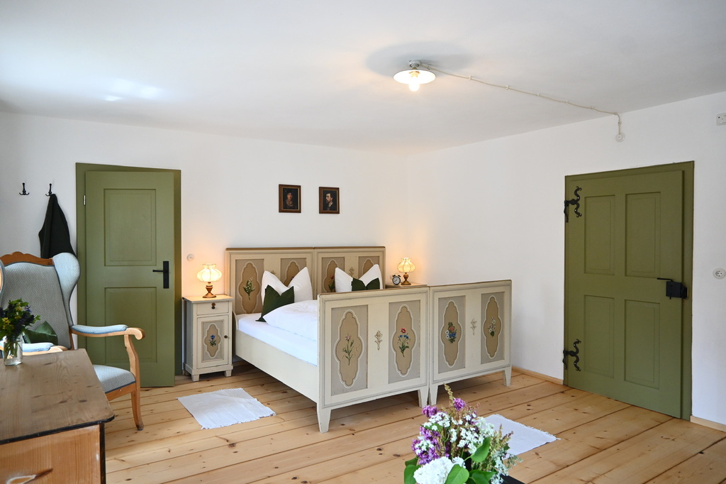 Die Schlafzimmer sind mit handbemalten Bauernmöbeln aus Familienbesitz eingerichtet.