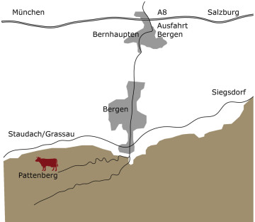 Anfahrt: Von der A8 nehmen Sie die Ausfahrt Bergen und fahren durch Bernhaupten noch etwa 1 Km nach Bergen.
